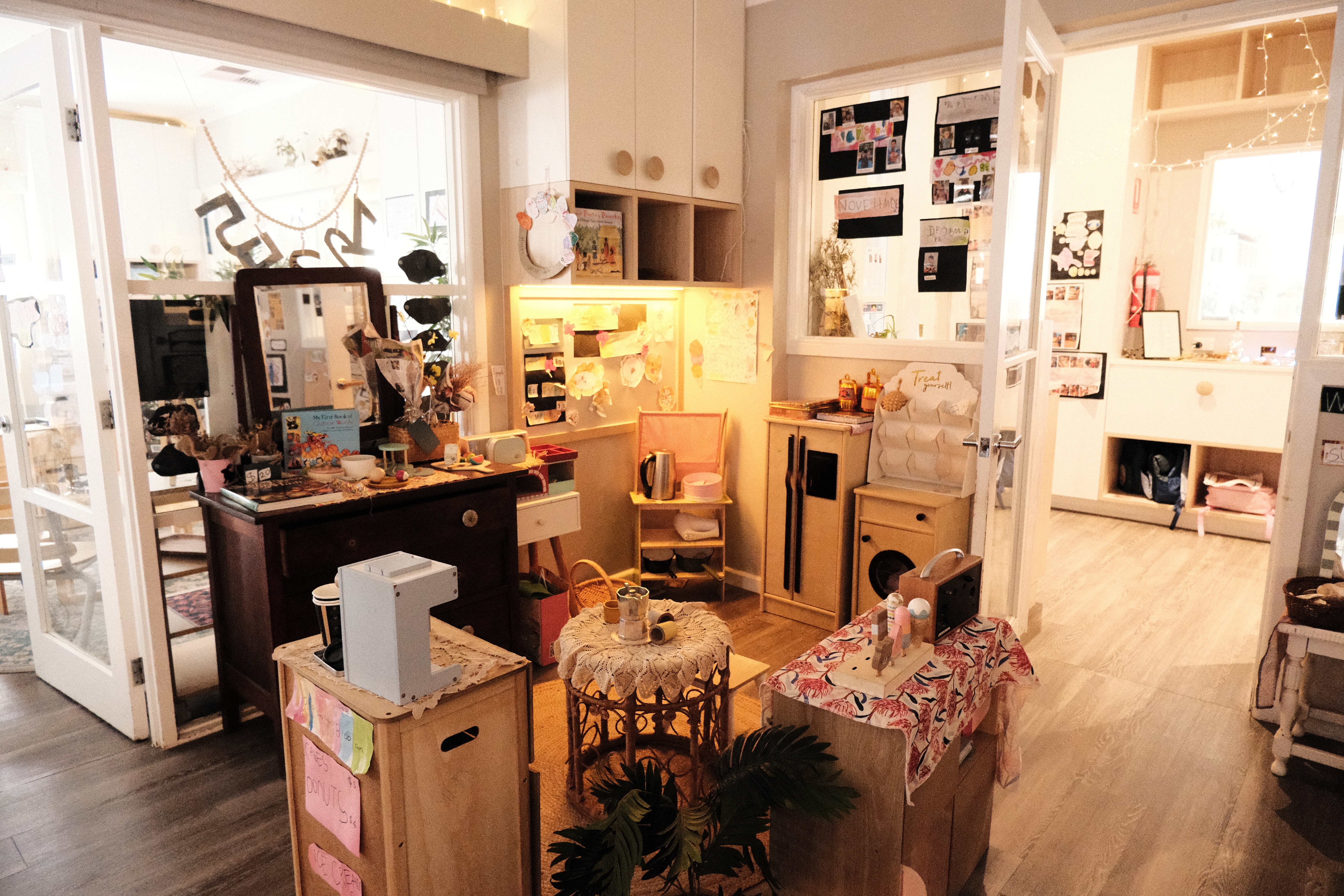 新澳幼儿园的教育理念中,家庭是孩子成长的首要环境,幼儿园则是家庭的伙伴与延伸。因此,“温馨”“归属感”“安全感”“关系”成为核心。在我们参访的多所幼儿园均是如此:柔软的沙发与地毯、暖暖的氛围灯,家庭中常见的圆桌木柜,书箱里塞满的绘本……还有老师的爱与关怀,共同构筑了孩子的安全港湾,让其在熟悉的家庭式氛围中放松身心,自由释放想象与创造,在紧密而温暖的真实关系中,投入生活与游戏。